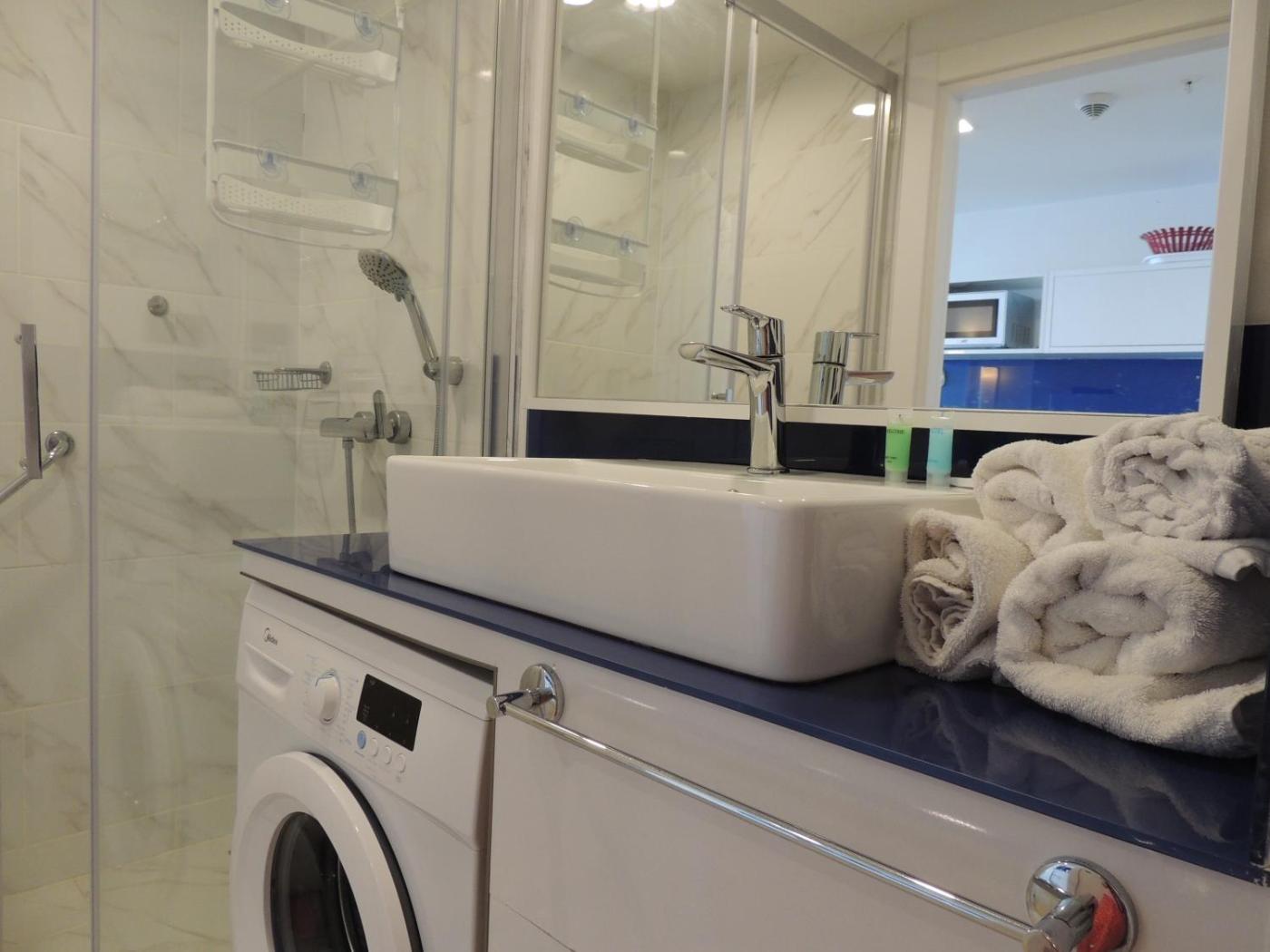 Apartment with Balcony. Boasting a private entrance, this air-conditioned apartment comes with a kitchen, 1 bedroom and 1 bathroom with a bath and a shower. Guests can make meals in the kitchen that features a refrigerator, a microwave and an electric kettle. This wheelchair accessible apartment has a washing machine, a seating area with a flat-screen TV and an adapted bath. The unit has 1 bed. ;