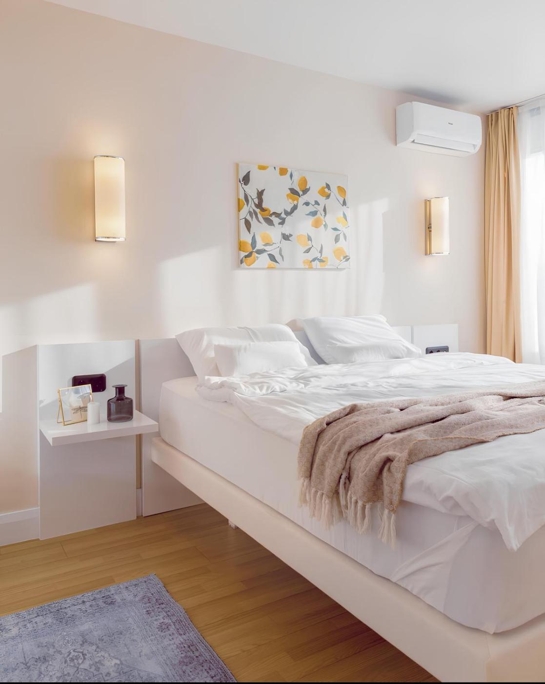 Two-Bedroom Suite. This spacious suite features 1 living room, 2 separate bedrooms and 1 bathroom with a bath and free toiletries. In the fully equipped kitchen, guests will find a refrigerator, kitchenware, a microwave and a tea and coffee maker. The air-conditioned suite features a flat-screen TV with satellite channels, a washing machine, a private entrance, soundproof walls as well as sea views. The unit has 3 beds. ;