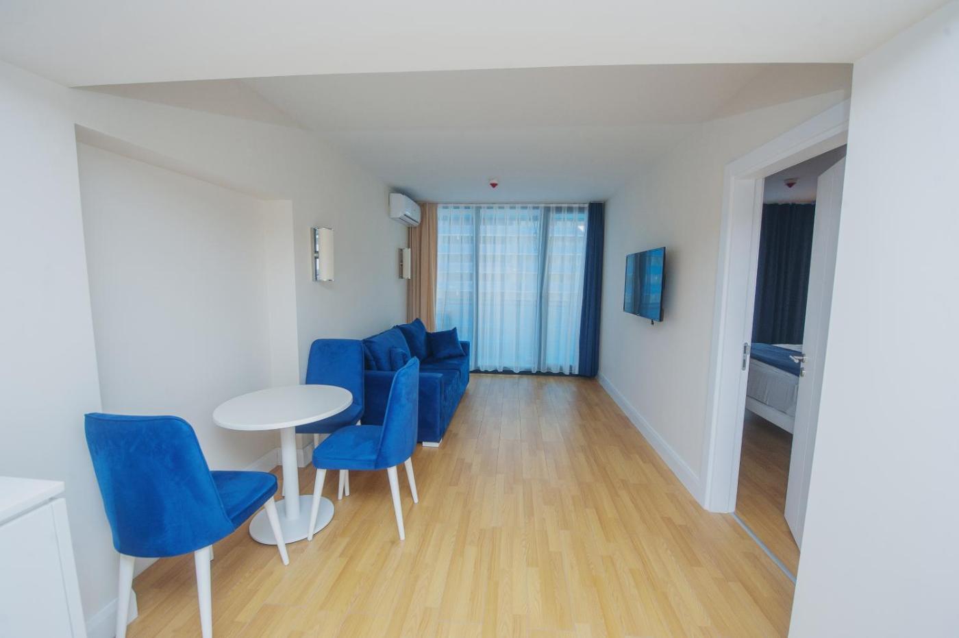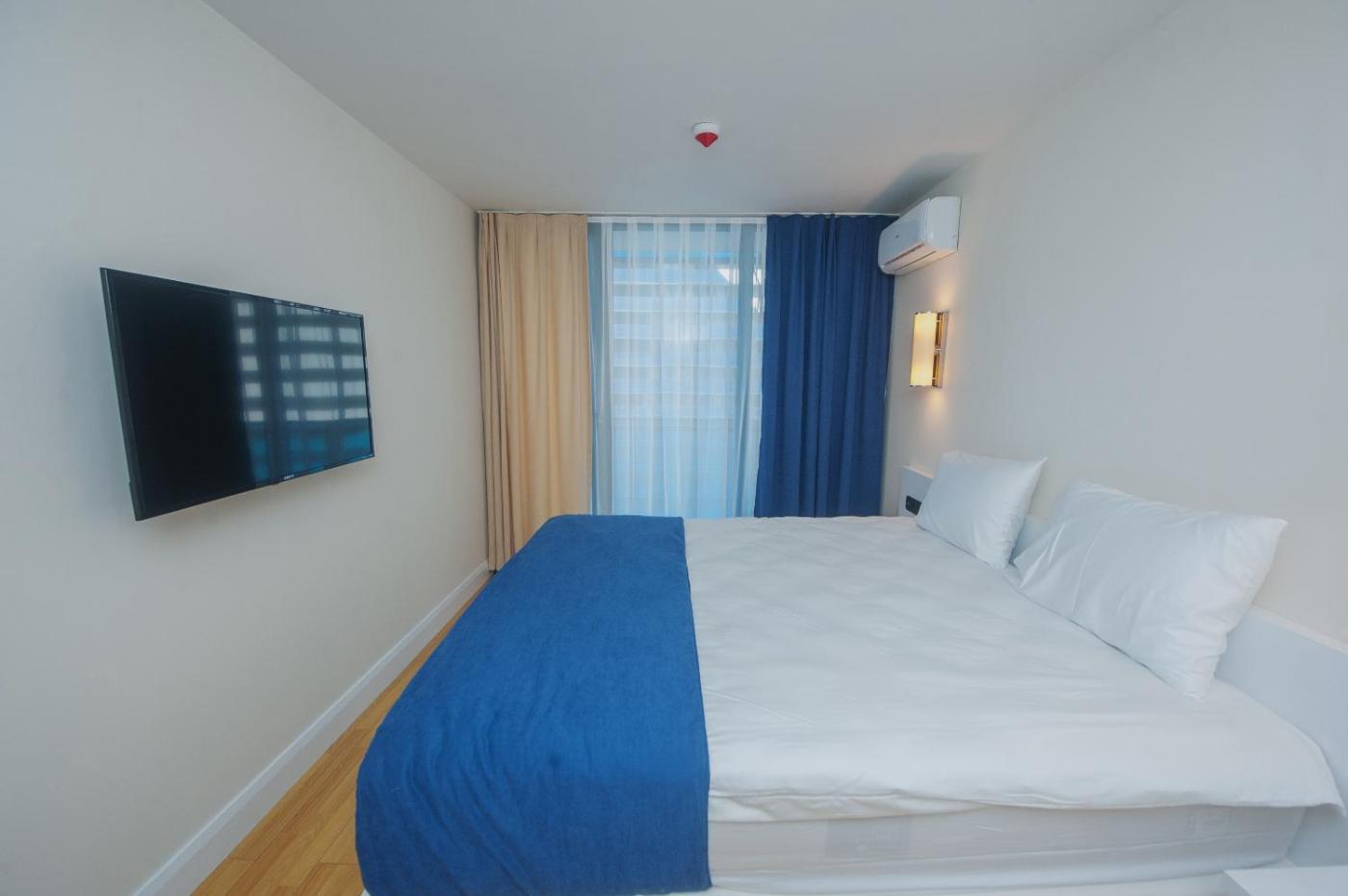 One-Bedroom Apartment. This air-conditioned apartment comes with 1 living room, 1 separate bedroom and 1 bathroom with a bath. The apartments kitchen is available for cooking and storing food. Boasting a balcony with sea views, this apartment also features soundproof walls and a flat-screen TV. The unit has 2 beds.
