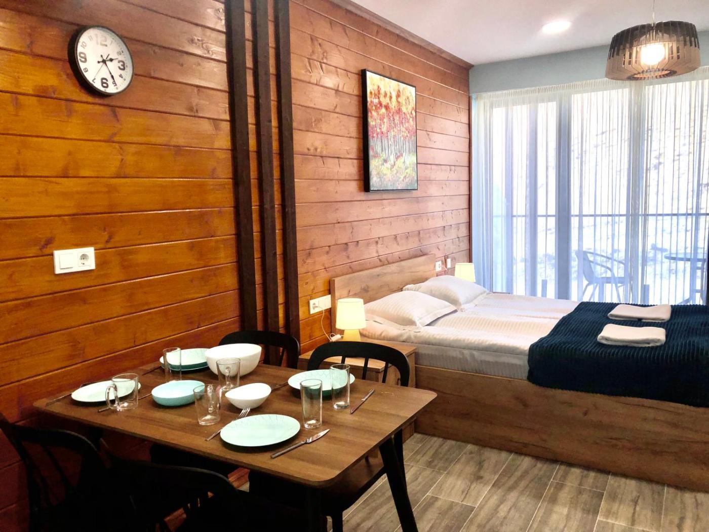 Situated in Gudauri, 2-room Apartment NFT New Gudauri Atrium Suite offers ski-to-door access, free WiFi, a 24-hour front desk, and a lift. Boasting an ATM, this property also provides guests with a childrens playground. The apartment has parking on-site, spa facilities and room service.