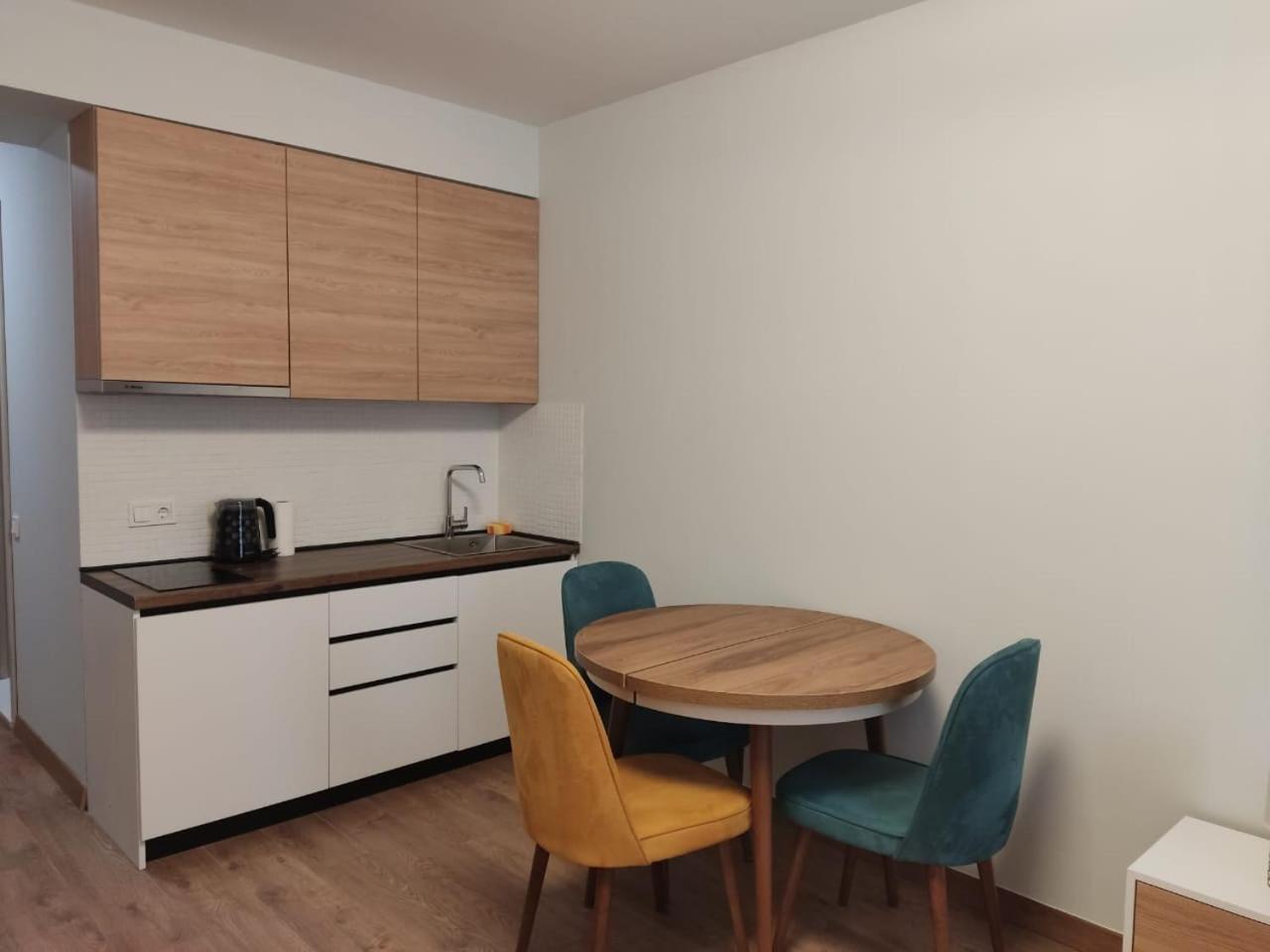 One-Bedroom Apartment. The apartment has 1 bedroom and 1 bathroom with a shower and free toiletries. Guests can make meals in the kitchen that features a stovetop, a refrigerator, kitchenware and an electric kettle. The apartment features parquet floors, a seating area with a flat-screen TV, a dining area, a wardrobe as well as mountain views. The unit has 2 beds.