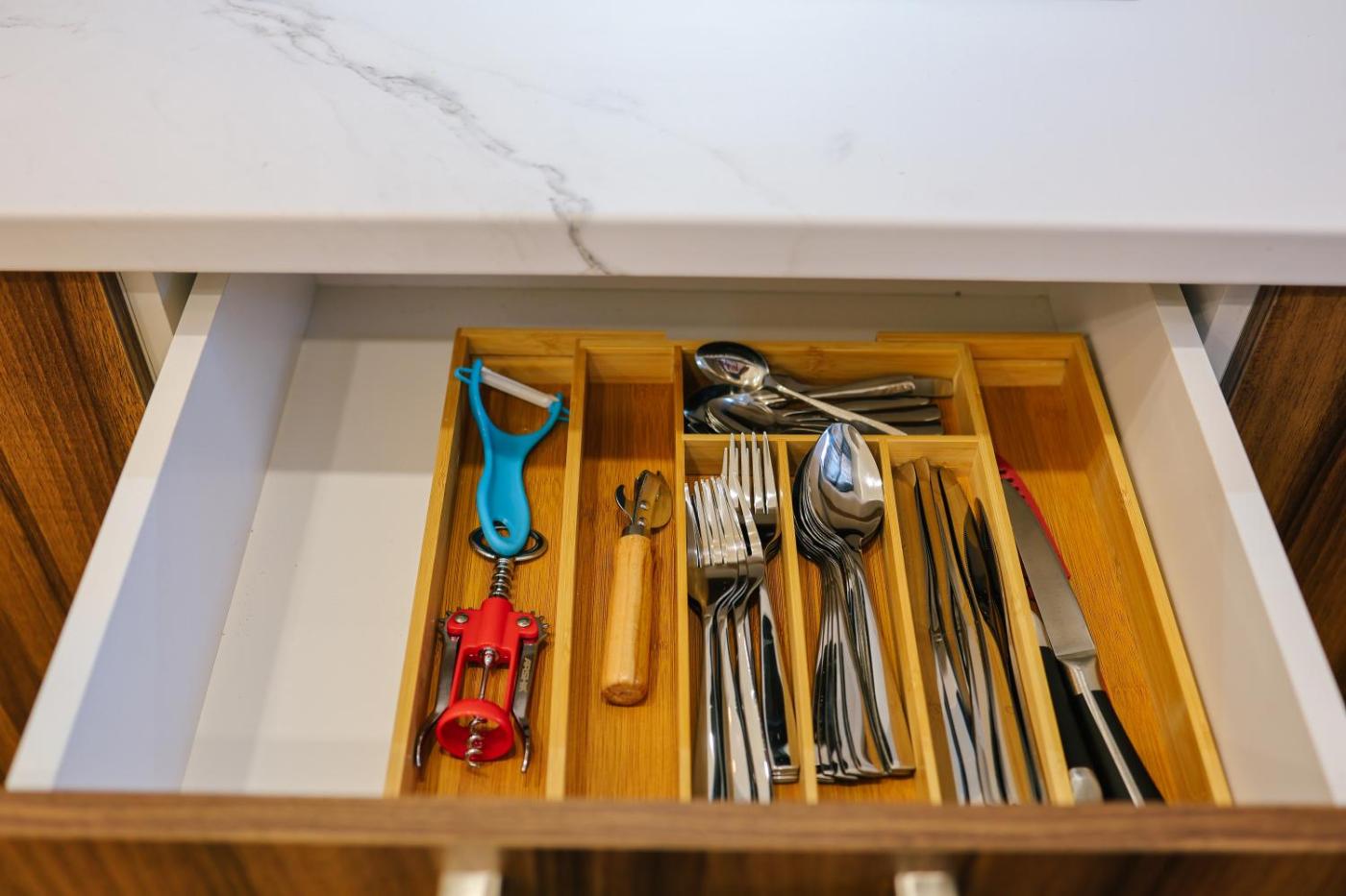 Apartment. This apartment is comprised of 1 living room, 1 separate bedroom and 1 bathroom with a bath or a shower and free toiletries. The well-equipped kitchen has a stovetop, a refrigerator, kitchenware and an oven. This apartment is air-conditioned and features a seating area with a flat-screen TV, a washing machine, a dining area, a wardrobe, as well as an electric kettle. The unit offers 1 bed.