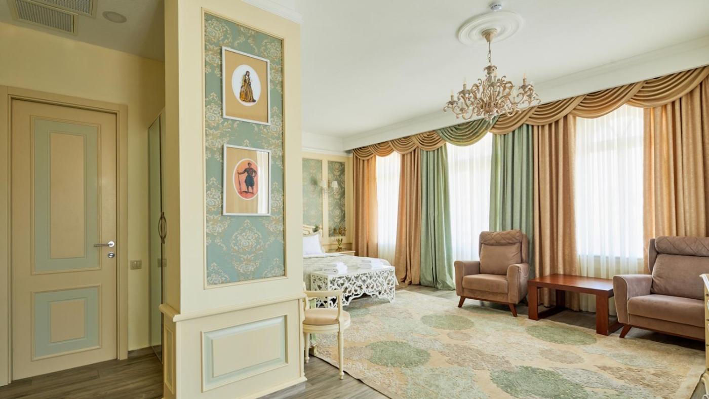Suite with Terrace. Located on the third floor, this king room is accessible via elevator. Guests can enjoy the balcony, offering old Tbilisi, Mtkvari River, sulphur baths and Metekhi Church views. This two-room accommodation contains a living room and a bedroom. There is a TV with international channels, WiFi, minibar, safety box and a private bathroom with free toiletries. ;
