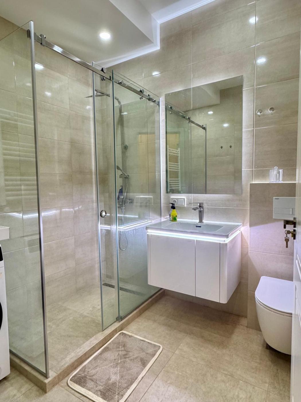 Two-Bedroom Apartment. Boasting a private entrance, this air-conditioned apartment features 1 living room, 1 separate bedroom and 1 bathroom with a bath and a shower. A kitchen fitted with a refrigerator, kitchenware and a microwave is available for cooking and storing food. The spacious apartment features a flat-screen TV, a washing machine, a tea and coffee maker, a seating area as well as city views. The unit has 2 beds.