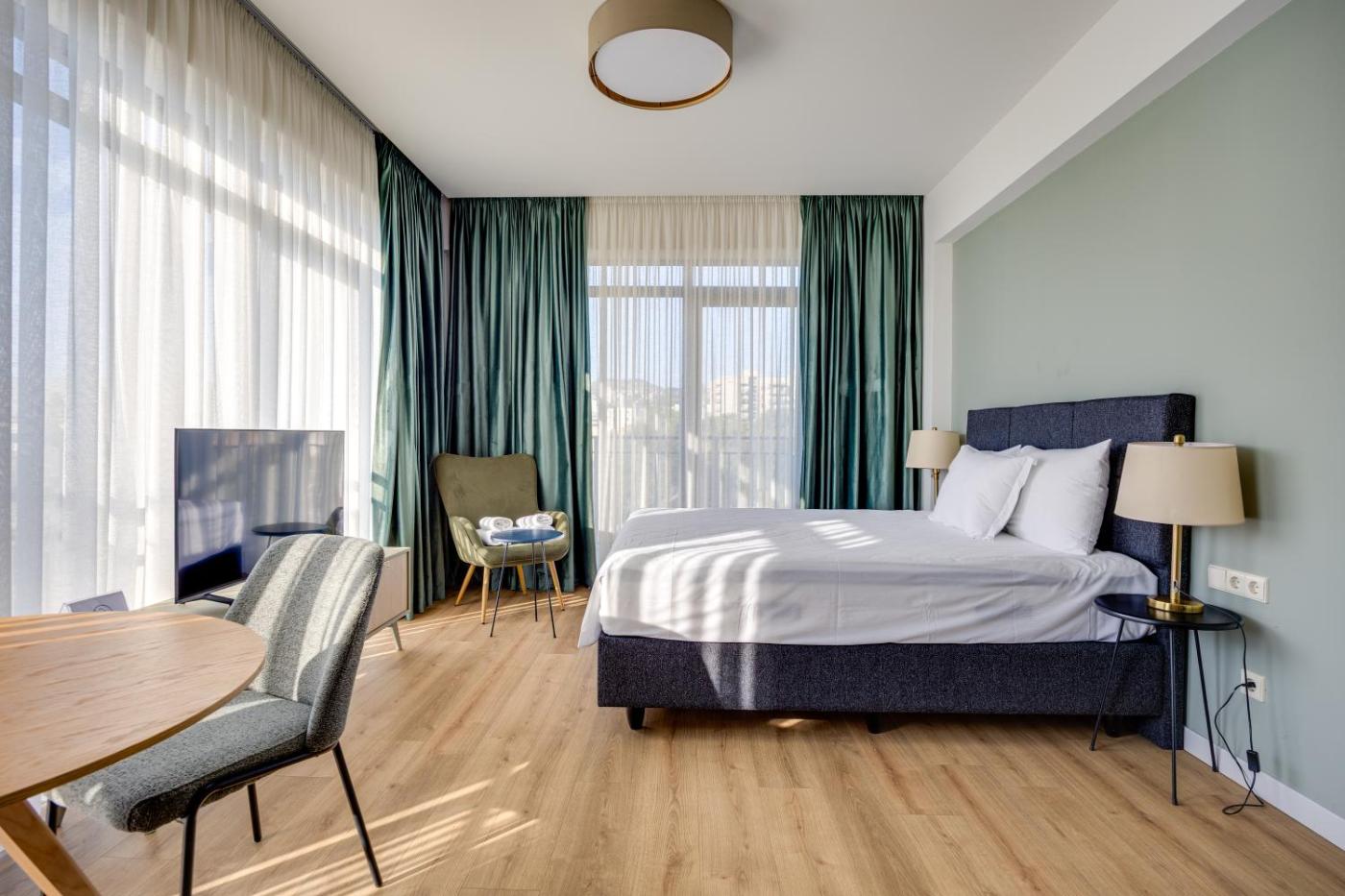 One-Bedroom Apartment. The air-conditioned apartment features 1 bedroom, 1 bathroom and a kitchen. The apartments kitchen is available for cooking and storing food. This apartment has a washing machine, an electric kettle, a flat-screen TV and a balcony. The unit offers 1 bed.