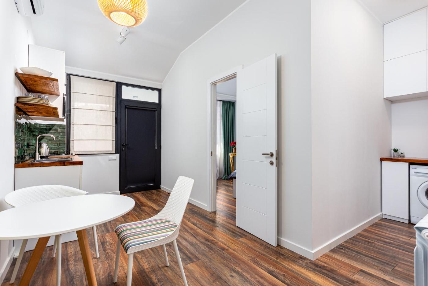 One-Bedroom Apartment. This air-conditioned apartment features 1 living room, 1 separate bedroom and 1 bathroom with a hairdryer. The apartments kitchen, which has a refrigerator and a microwave, is available for cooking and storing food. Boasting a balcony with garden views, this apartment also features a washing machine and a flat-screen TV. The unit has 2 beds.