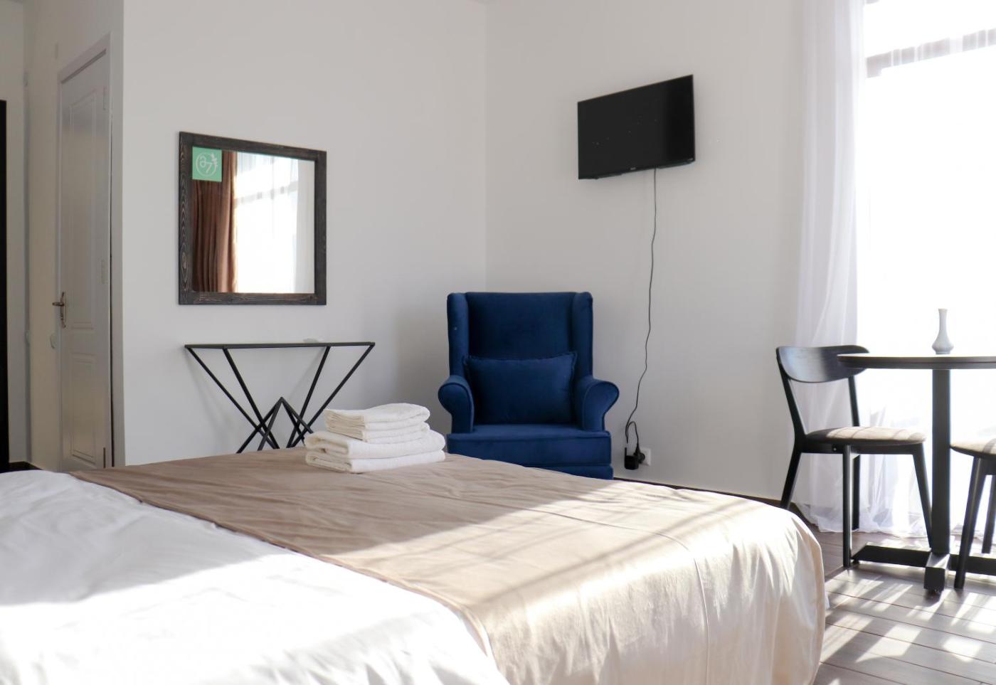 Double Room with Balcony. Featuring free toiletries and bathrobes, this double room includes a private bathroom with a shower, a hairdryer and slippers. This double room has a dining area, flat-screen TV, a quiet street view, as well as chocolate for guests. The unit has 1 bed. ;